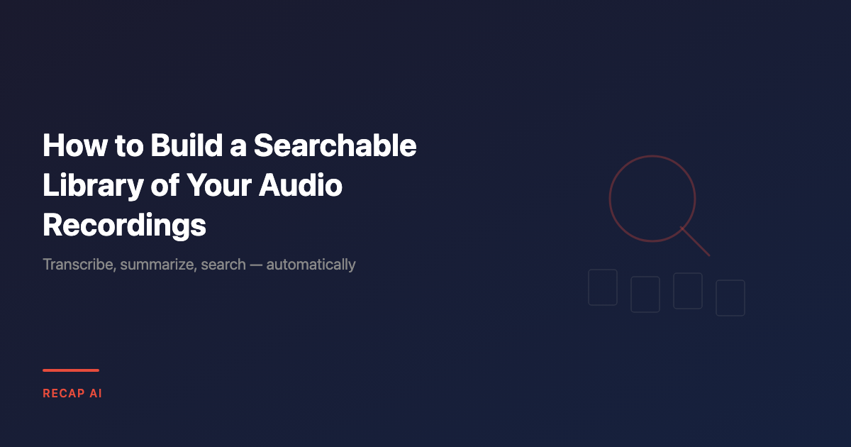 Your recordings are already worth something. RECAP transcribes, summarizes, and indexes them — so you can search six months of conversations in seconds. Start free — 30 minutes/month →